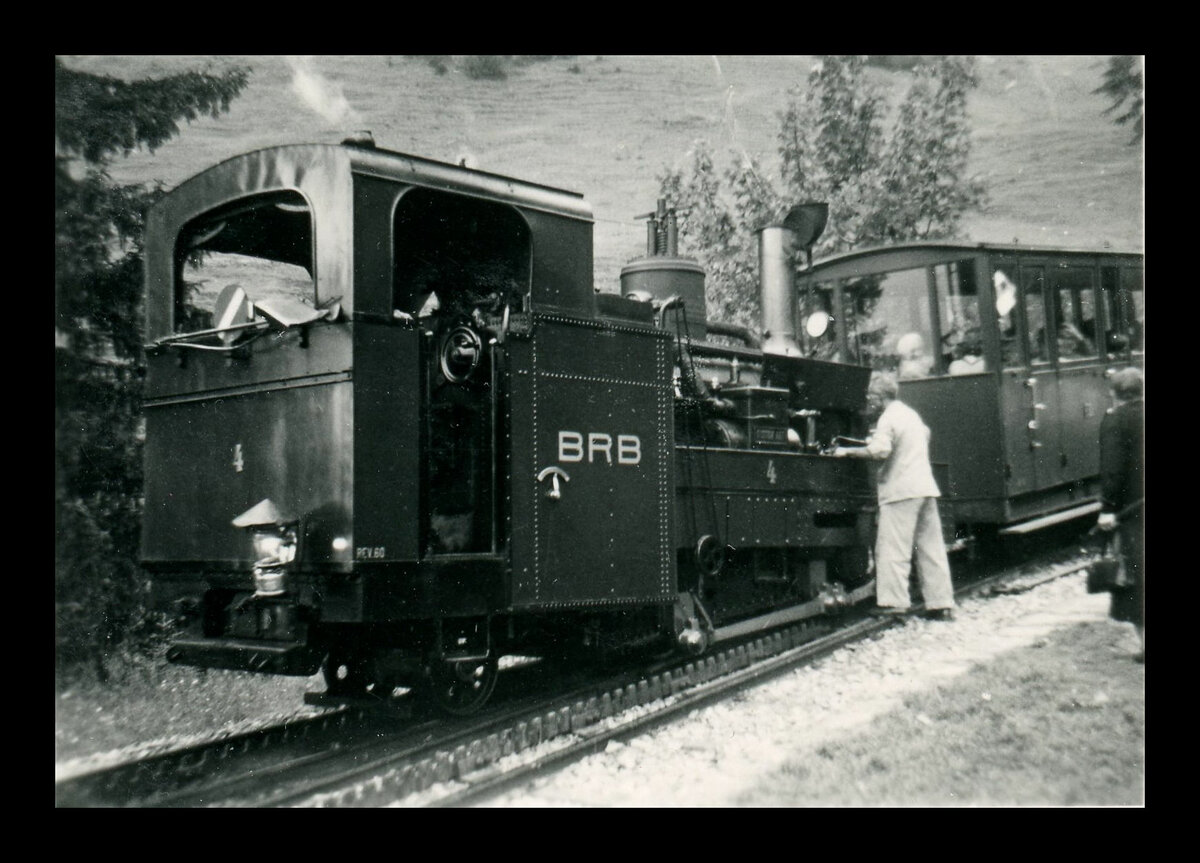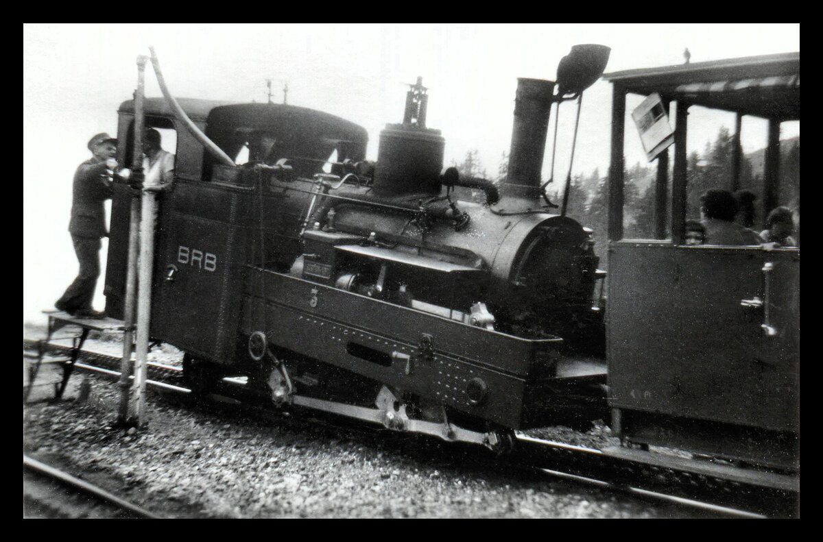 Die BRB H 2/3 15 wartet auf der Gipfelstation Brienzer Rothorn (2266 müM) auf die Rückfahrt nach Brienz.