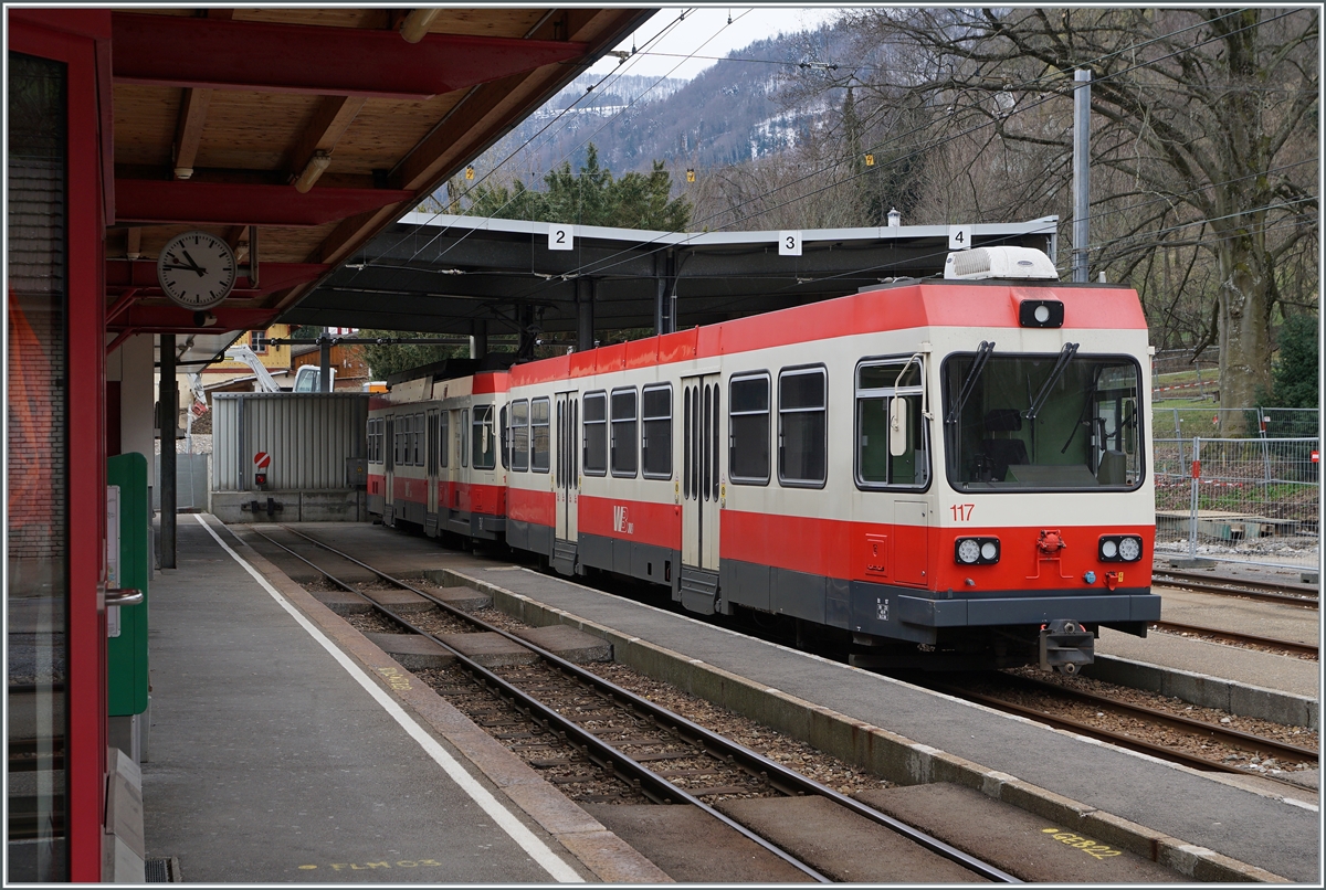 Das Bild zeigt einen WB Zug auf der Fahrt Richtung Waldenburg. Auf allen möglichen Kreuzungsstationen ist den Zügen Richtungsabhängig ein Gleis zugeordnet, die federnden Ausfahrweichen werden dann jeweils "aufgeschnitten" .