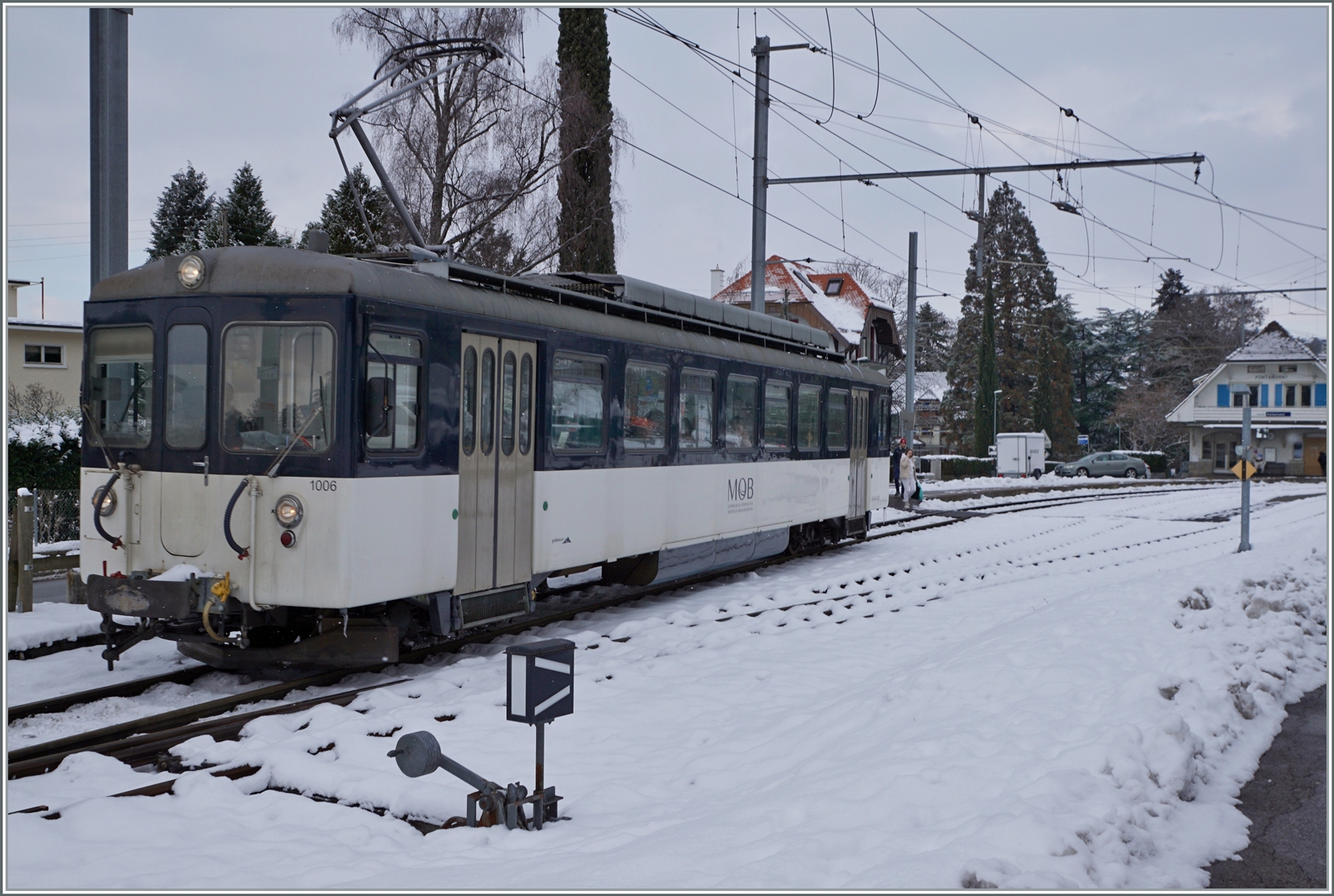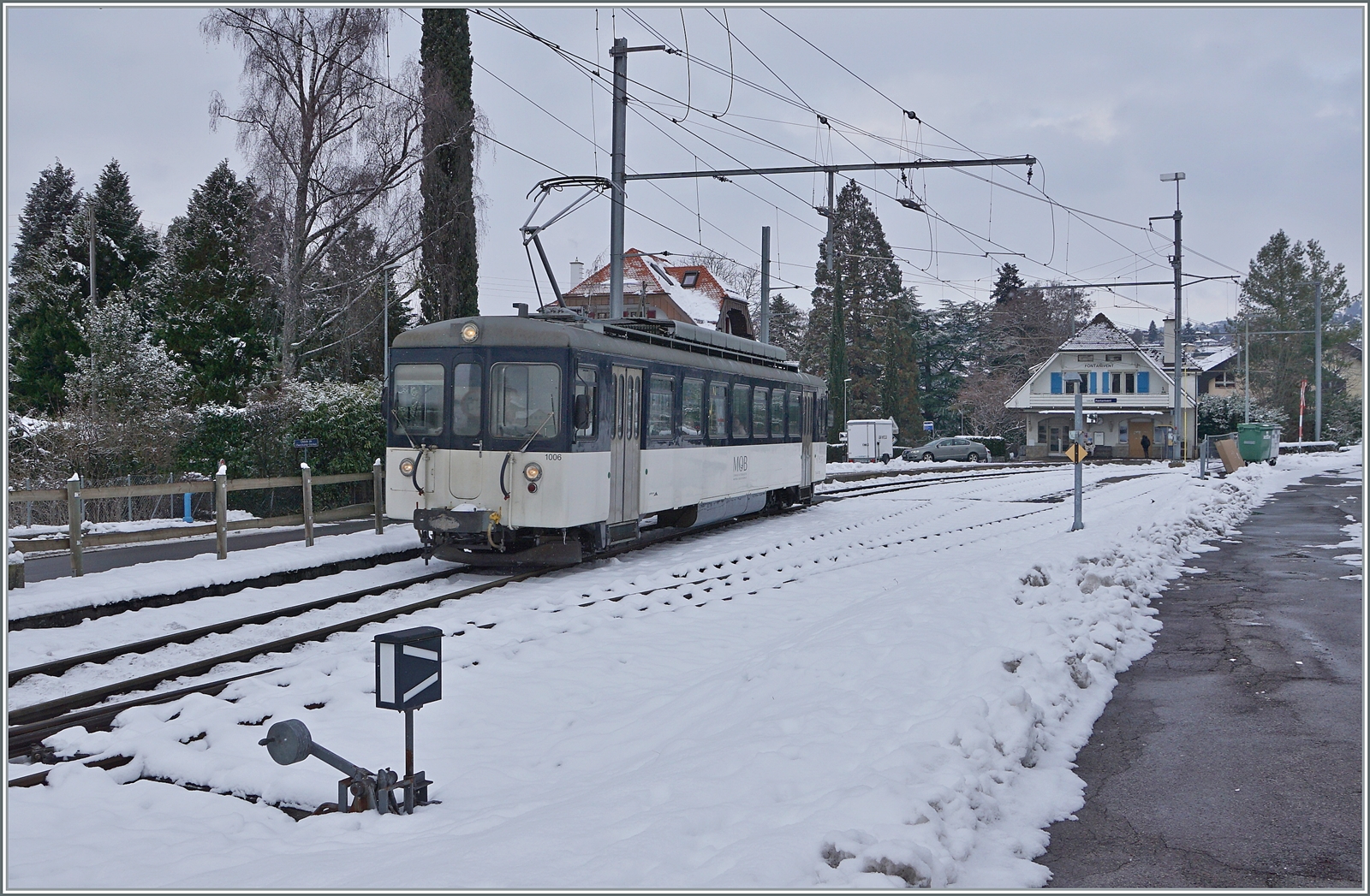 Erfreulicherweise auch im Sommer 2018 noch hie und da im Planbetrieb: Der MOB ABDe 8/8! Hier erreicht der MOB ABDe 8/8 4001 SUISSE als Regionalzug 2309 von Les Avants nach Montreux den Bahnhof von Fontanivent.