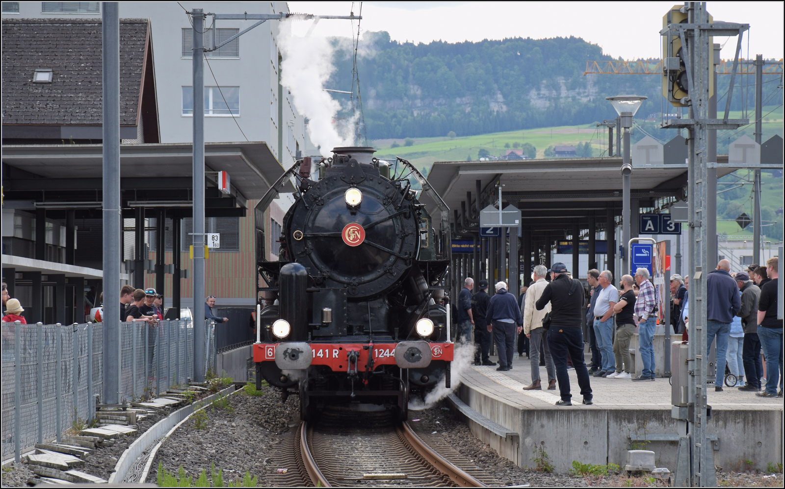Im Entlebuch: Einfahrt des BLS Lötschberger Nr. 105 als S6 (Stadtbahn Luzern, von Luzern nach Langnau im Emmental) in Escholzmatt. 25.März 2021