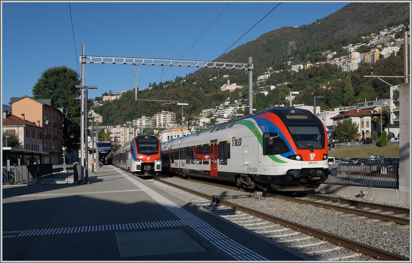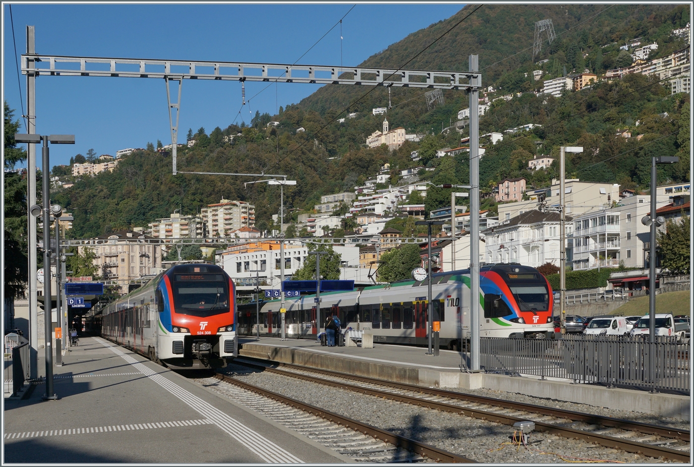 rabe-5243-flirt-3/899970/ein-verglich-der-tilo-flirt-5243 Ein Verglich der TILO Flirt 524.3 und 524.0 in Locarno: Links im Bild der TILO RABe 524 308 (und ein weiterer) welche als RE80 auf die Abfahrt nach Milano Centrale warten, rechts der TILO RABe 524 010 (ebenfalls mit einem weitern Flirt) welcher als S 20 Locarno in Richtung Castione-Arbedo verlässt.